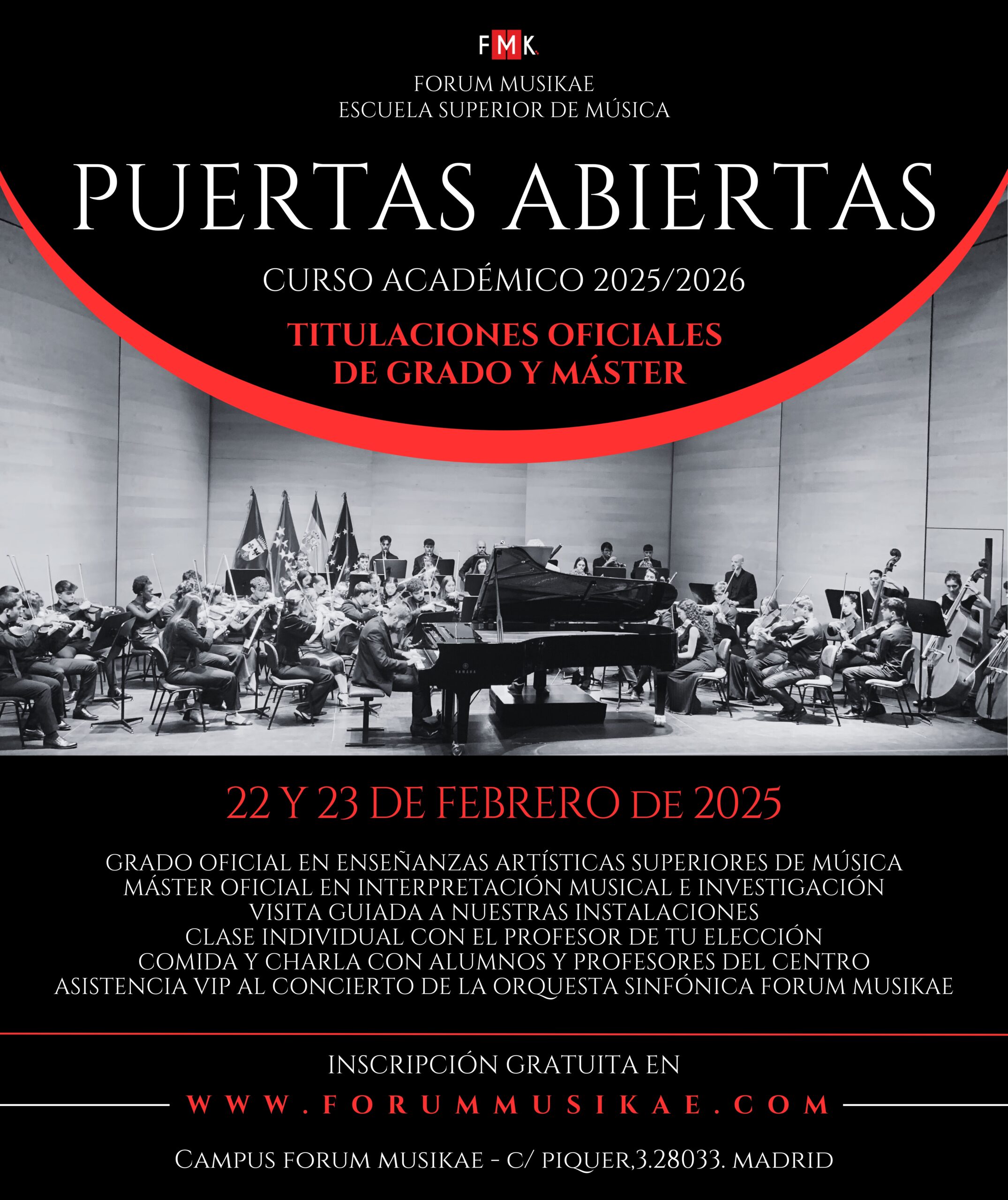 ¡Inscríbete de forma gratuita a las Jornadas de Puertas Abiertas 2025 de la Escuela Superior de Música Forum Musikae!