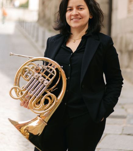 participa activamente en los diferentes grupos de cámara y se desempeña como trompa
