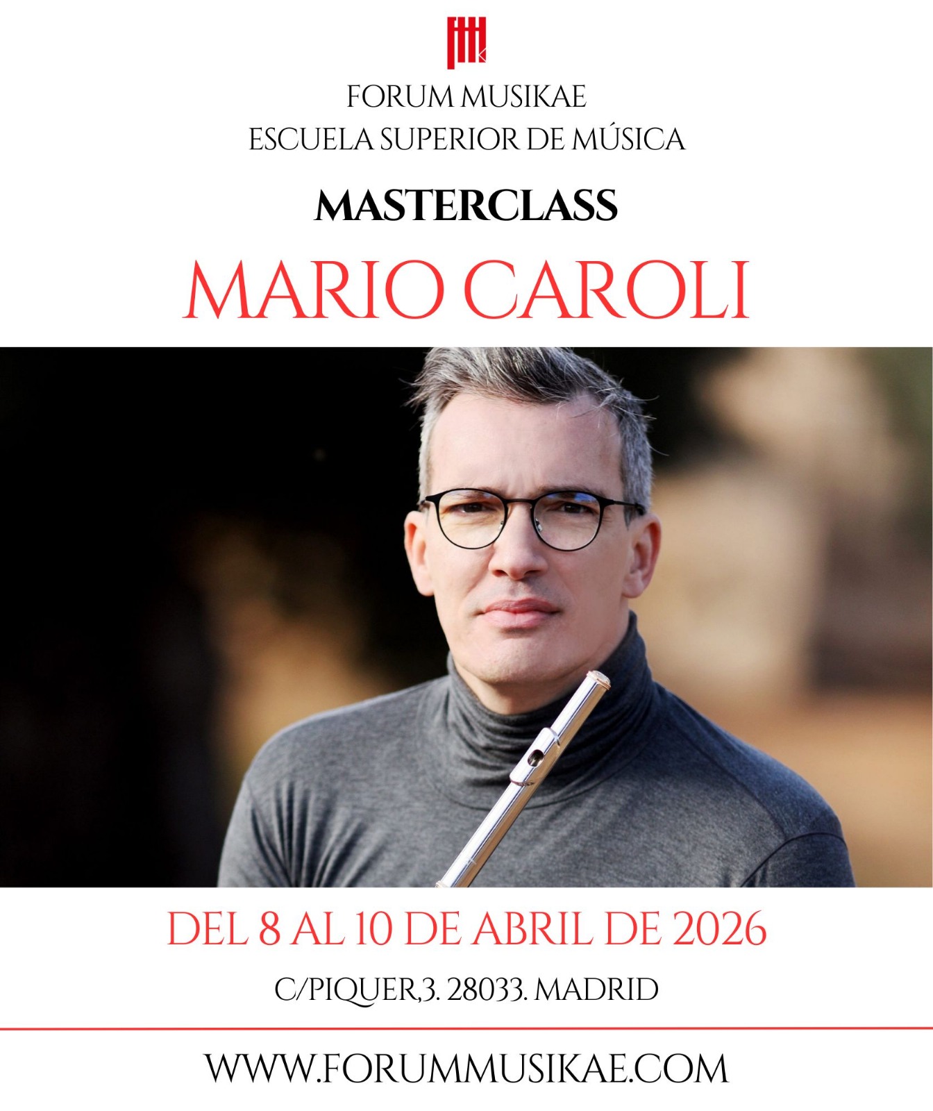 Día: 26 de abril de 2025 Dónde: Forum Musikae – Escuela Superior de Música (C/ Piquer,3.28033. Madrid). Inscripción: gratuita obligatoria. Plazas: limitadas hasta completar aforo.